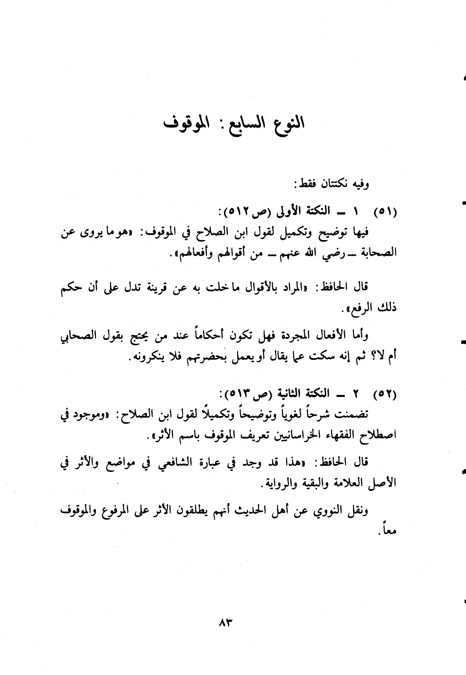 تضمنت شرحا لغويا وتوضيحا وتكميلا لقول ابن الصلاح: (وموجود في اصطلاح الفقهاء الخراسانيين تعريف الموقوف باسم الأثر".