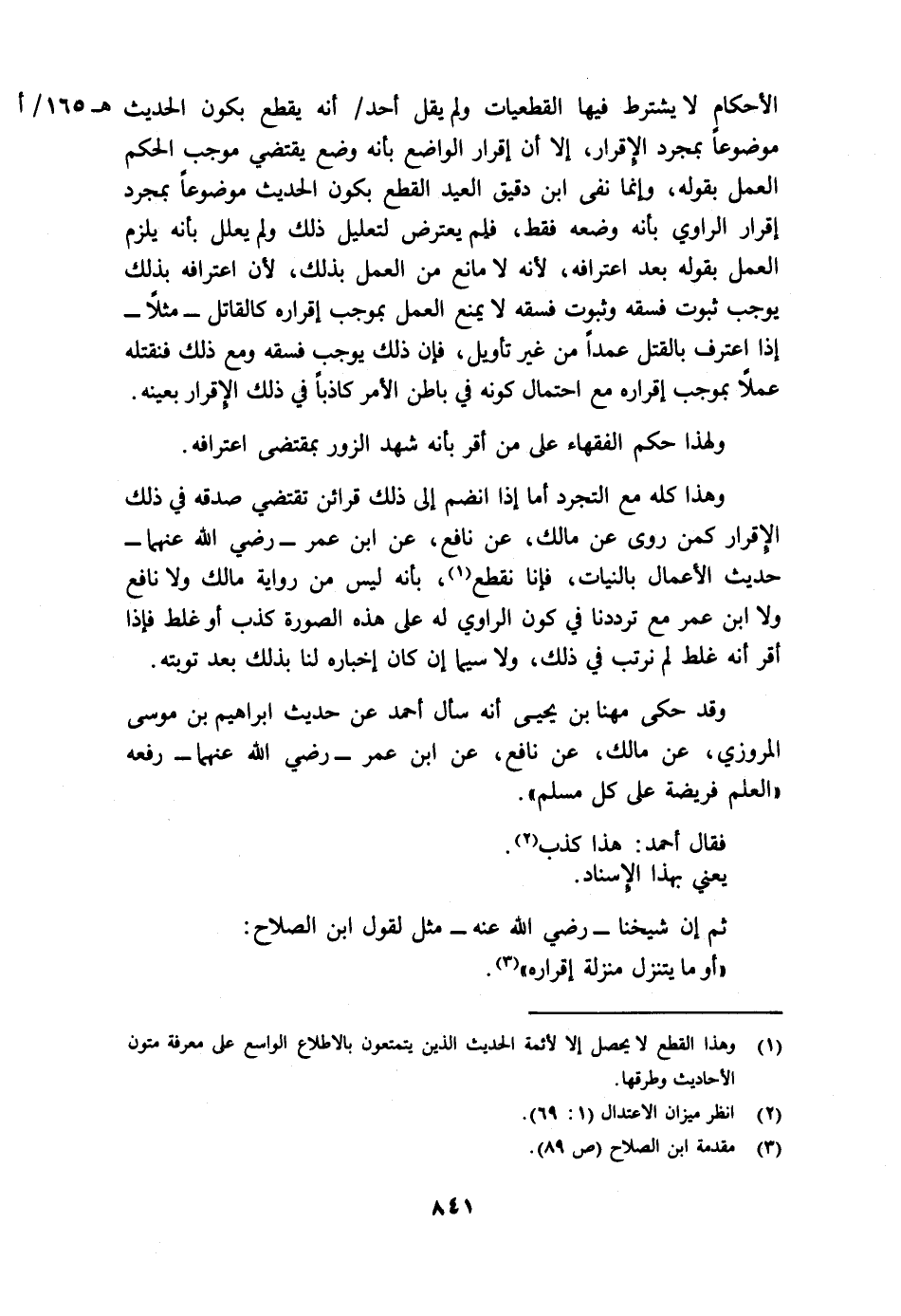1 وهذا القطع لا يحصل إلا لأئمة الحديث الذين يتمتعون بالاطلاع الواسع على معرفة متون الأحاديث وطرقها.