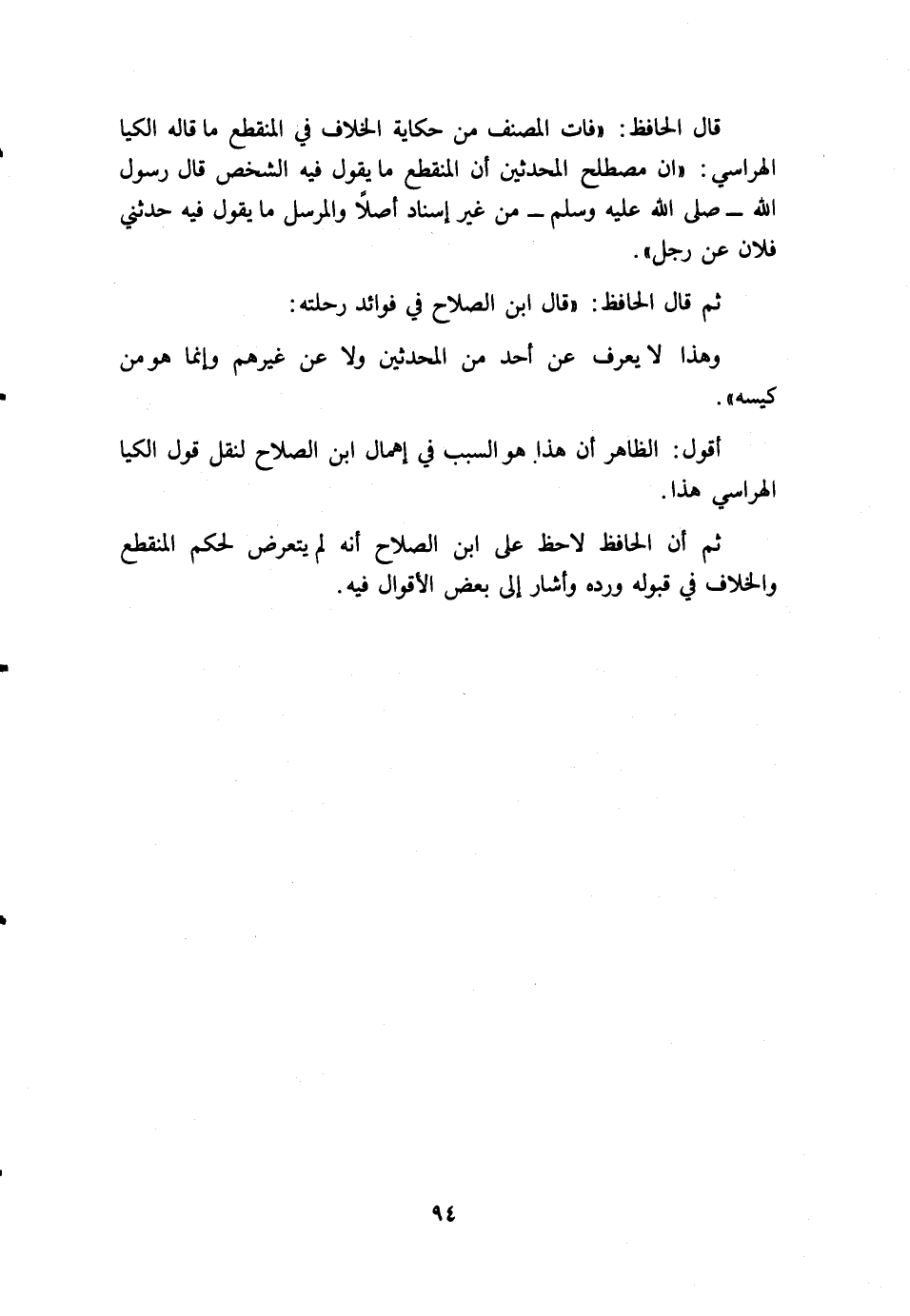 أقول: "الظاهر أن هذا هو السبب في إهمال ابن الصلاح لنقل قول الكيا الهراسي هذا.