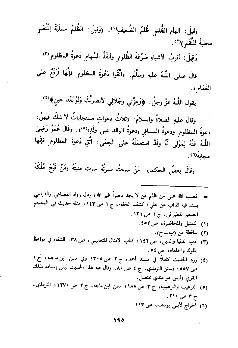 وَقَالَ عَلَيْهِ الصَّلَاة وَالسَّلَام ثَلَاث دعوات مستجابات لَا شكّ فِيهِنَّ دَعْوَة الْمَظْلُوم ودعوة الْمُسَافِر ودعوة الْوَالِد على وَلَده وَقَالَ عمر رَضِي الله عَنهُ لمولى لَهُ وَقد اسْتَعْملهُ على الْحمى اتَّقِ دَعْوَة الْمَظْلُوم فَإِنَّهَا مجابة