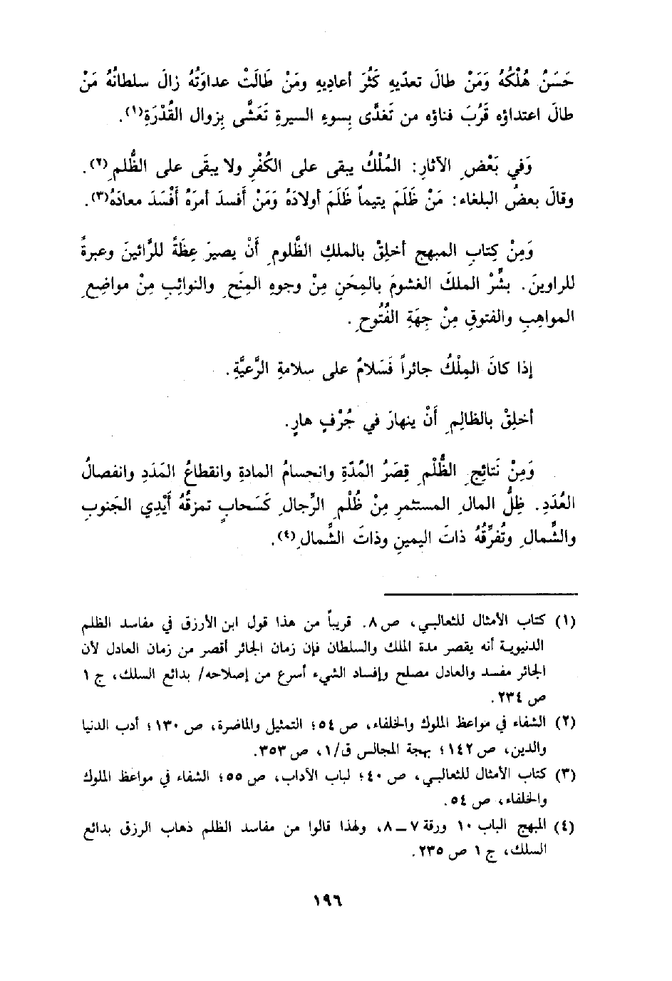 حسن هلكه وَمن كال تعديه كثر أعاديه وَمن طَالَتْ عداوته زَالَ سُلْطَانه من طَال اعتداؤه قرب فناؤه من تغذى بِسوء السِّيرَة تعشى بِزَوَال الْقُدْرَة