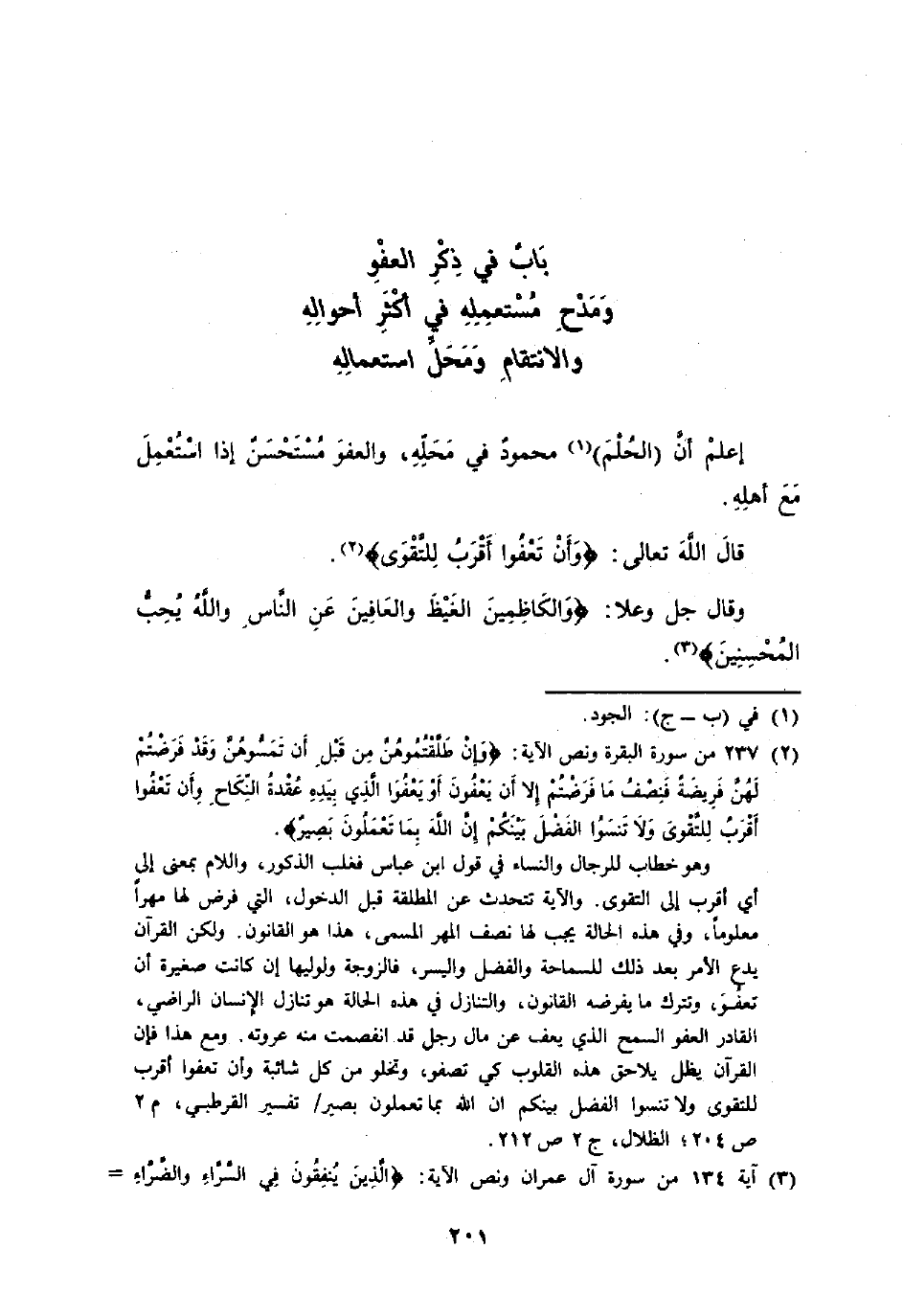 بَاب فِي ذكر الْعَفو ومدح مستعمله فِي أَكثر أَحْوَاله والانتقام وَمحل اسْتِعْمَاله