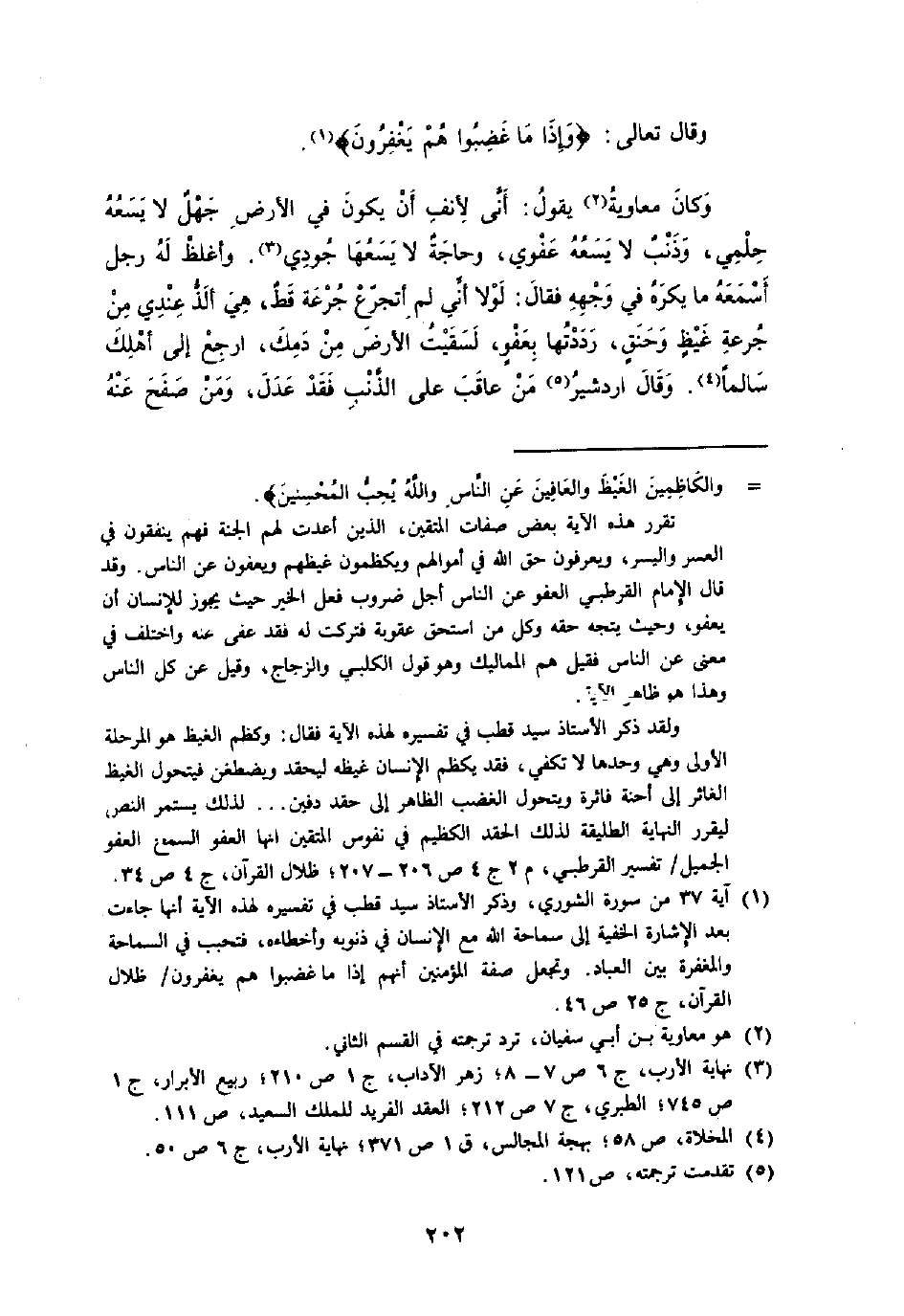 وَكَانَ مُعَاوِيَة يَقُول أَنى لأنف أَن يكون فِي الأَرْض جهل لَا يَسعهُ حلمي وذنب لَا يَسعهُ عفوي وحاجة لَا يَسعهَا جودي وَأَغْلظ لَهُ رجل أُسَمِّهِ مَا يكره فِي وَجهه فَقَالَ لَوْلَا أَنِّي لم أتجرع جرعة قطّ هِيَ ألذ عِنْدِي من جرعة غيظ وحنق رَددتهَا بِعَفْو لسقيت الأَرْض من دمك ارْجع إِلَى أهلك سالما وَقَالَ اردشير من عاقب على الذَّنب فقد عدل وَمن صفح عَنهُ