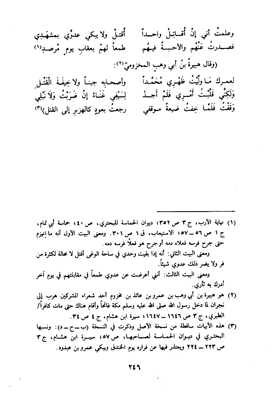 (لعمرك مَا وليت ظَهْري مُحَمَّدًا ... وَأَصْحَابه جبنا وَلَا خيفة الْقَتْل)
