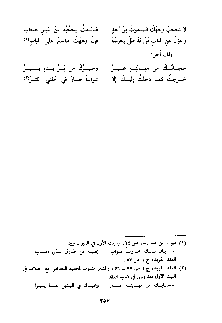 (لَا تحجب وَجهك الممقوت من أحد ... فالمقت يَحْجُبهُ من غير حجاب)