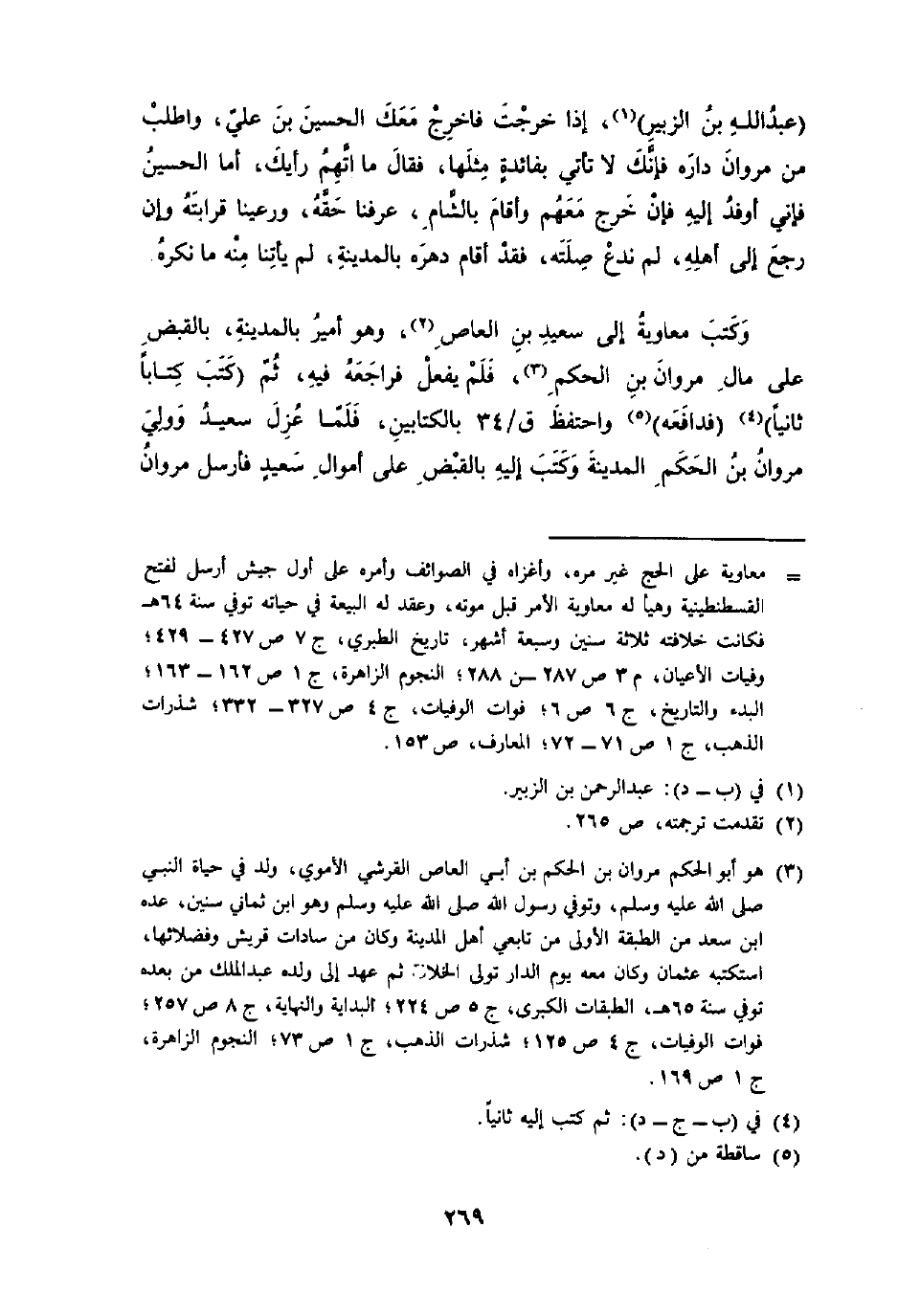 عبد الله بن الزبير إِذا خرجت فَاخْرُج مَعَك الْحُسَيْن بن عَليّ واطلب من مَرْوَان دَاره فَإنَّك لَا تَأتي بفائدة مثلهَا فَقَالَ مَا اتهمَ رَأْيك أما الْحُسَيْن فَإِنِّي أوفد إِلَيْهِ فَإِن خرج مَعَهم وَأقَام بِالشَّام عرفنَا حَقه ورعينا قرَابَته وَإِن رَجَعَ إِلَى أَهله لم نَدع صلته فقد أَقَامَ دهره بِالْمَدِينَةِ لم يأتنا نته مَا نكره