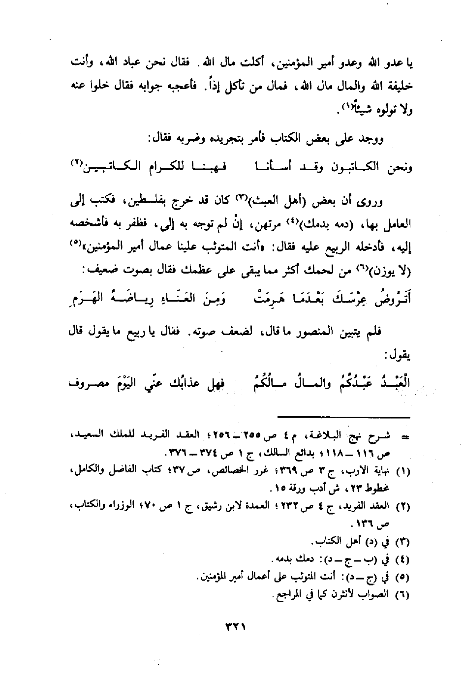 (العَبْد عبدكم وَالْمَال مالكم ... فَهَل عذابك عني الْيَوْم مَصْرُوف)