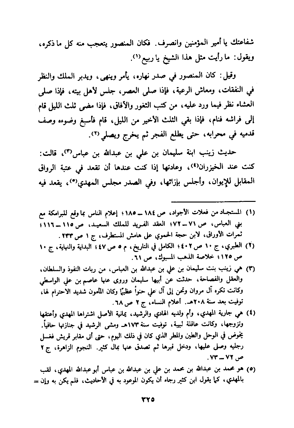 حَدِيث زَيْنَب ابْنة سُلَيْمَان بن عَليّ بن عبد الله بن عَبَّاس قَالَت كنت عِنْد الخيزران وعادتها إِذا كَانَت عِنْدهَا أَن تقعد فِي عتبَة الرواق الْمُقَابل للإيوان وأجلس بإزائها وَفِي الصَّدْر مجْلِس الْمهْدي يقْعد فِيهِ