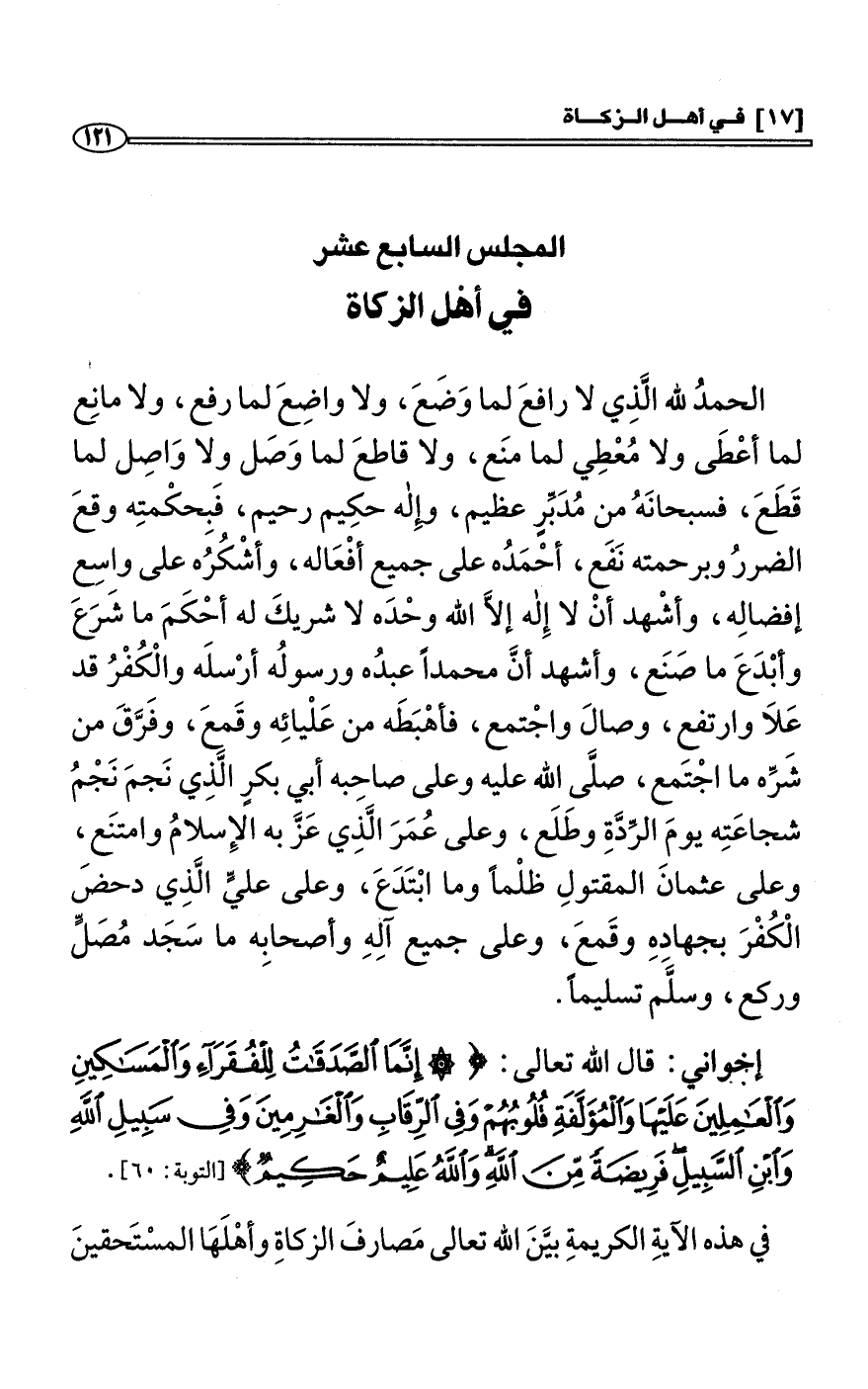 المجلس السابع عشر: في أهْل الزكاة