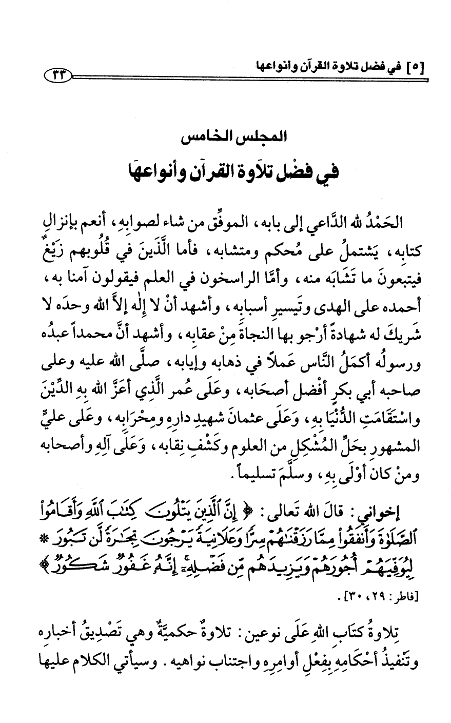 المجلس الخامس: في فضْل تلاَوة القرآن وأنواعهَا