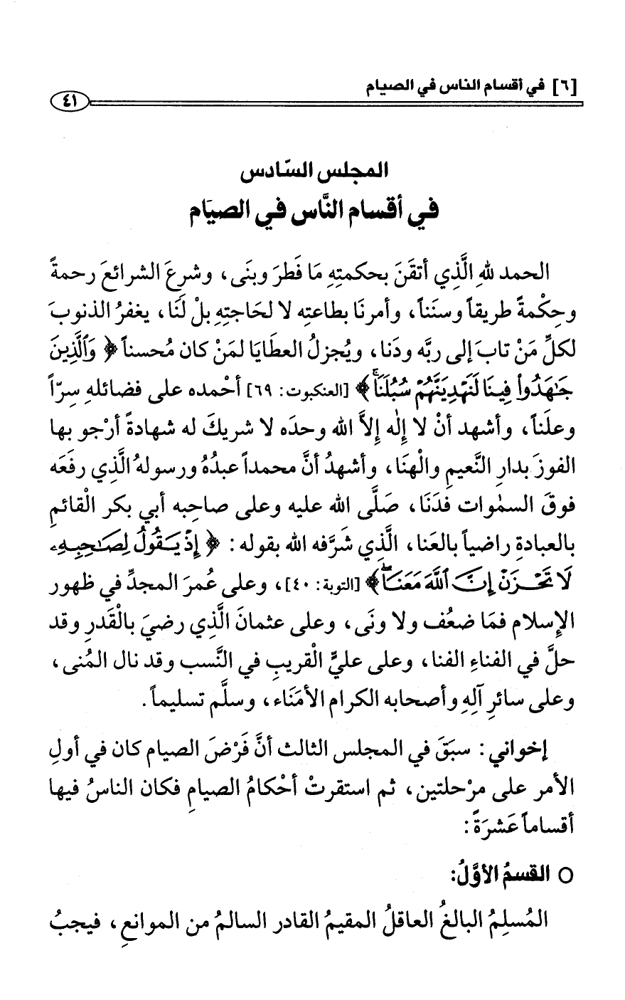 المجلس السّادس: في أقسام النَّاس في الصيَام