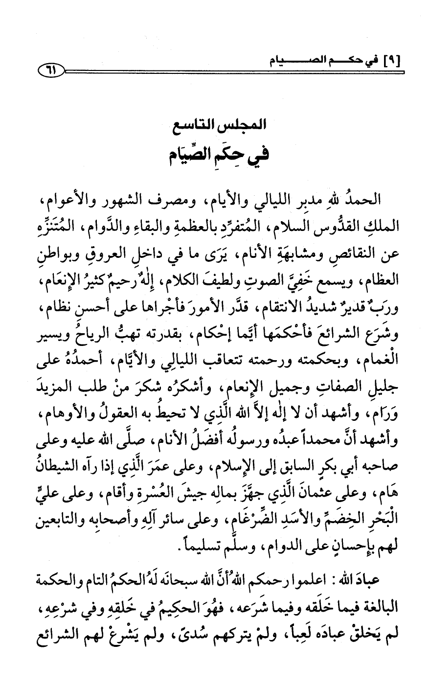 المجلس التاسع: في حِكَمِ الصِّيَام