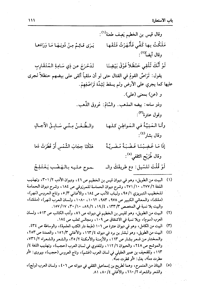 (2) البيت من الطويل، وهو لقيس بن الخطيم في ديوانه ص 86، وأدب الكاتب ص 513، ولسان العرب (سوم) ، وبلا نسبة في الاشتقاق ص 109، ومجالس ثعلب ص 184.
