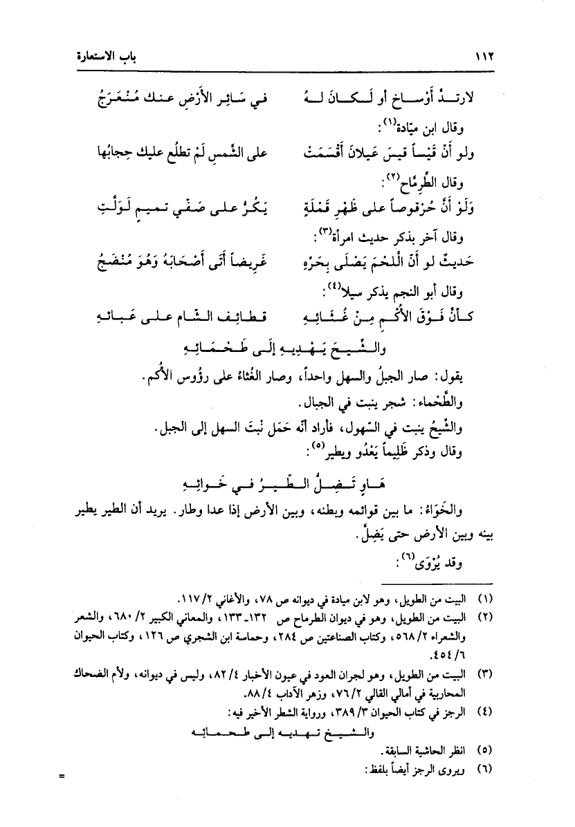 (2) البيت من الطويل، وهو في ديوان الطرماح ص 132- 133، والمعاني الكبير 2/ 680، والشعر والشعراء 2/ 568، وكتاب الصناعتين ص 284، وحماسة ابن الشجري ص 126، وكتاب الحيوان 6/ 454.