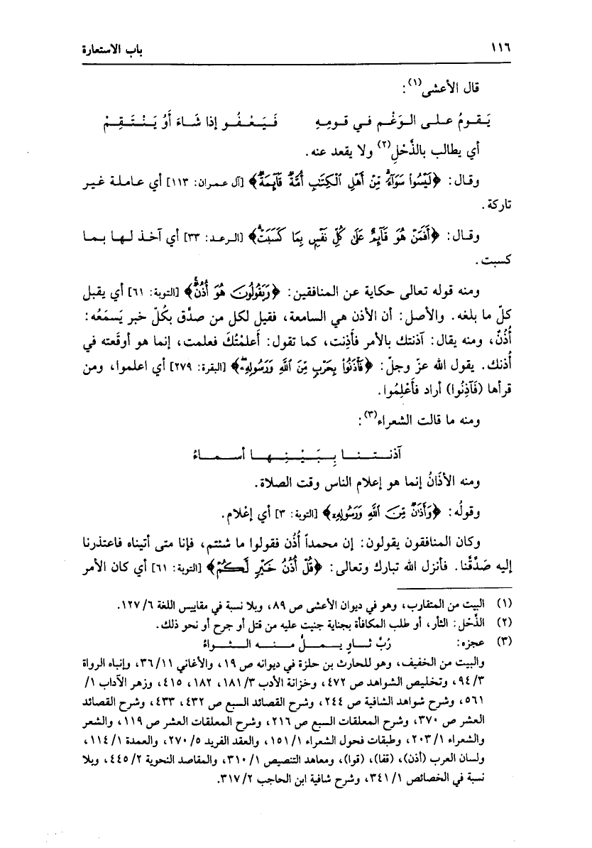 (3) عجزه: ربّ ثاو يملّ منه الثواء والبيت من الخفيف، وهو للحارث بن حلزة في ديوانه ص 19، والأغاني 11/ 36، وإنباه الرواة 3/ 94، وتخليص الشواهد ص 472، وخزانة الأدب 3/ 181، 182، 415، وزهر الآداب 1/ 561، وشرح شواهد الشافية ص 244، وشرح القصائد السبع ص 432، 433، وشرح القصائد العشر ص 370، وشرح المعلقات السبع ص 216، وشرح المعلقات العشر ص 119، والشعر والشعراء 1/ 203، وطبقات فحول الشعراء 1/ 151، والعقد الفريد 5/ 270، والعمدة 1/ 114، ولسان العرب (أذن) ، (قفا) ، (قوا) ، ومعاهد التنصيص 1/ 310، والمقاصد النحوية 2/ 445، وبلا نسبة في الخصائص 1/ 341، وشرح شافية ابن الحاجب 2/ 317.
