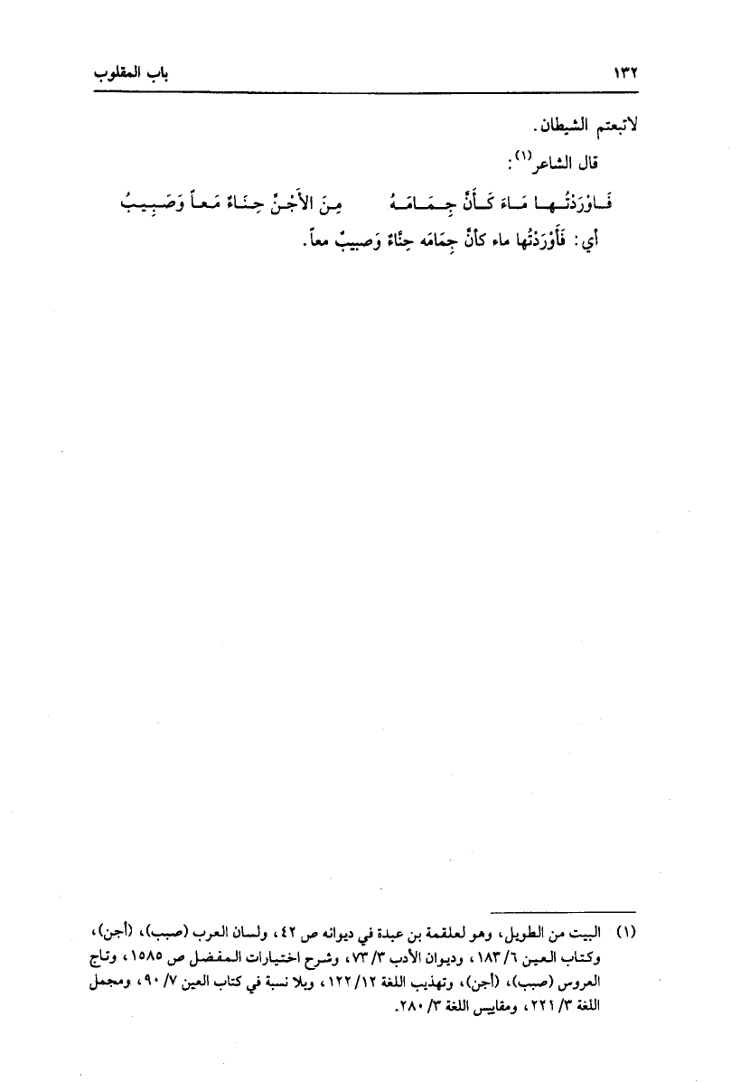 (1) البيت من الطويل، وهو لعلقمة بن عبدة في ديوانه ص 42، ولسان العرب (صبب) ، (أجن) ، وكتاب العين 6/ 183، وديوان الأدب 3/ 73، وشرح اختيارات المفضل ص 1585، وتاج العروس (صبب) ، (أجن) ، وتهذيب اللغة 12/ 122، وبلا نسبة في كتاب العين 7/ 90، ومجمل اللغة 3/ 221، ومقاييس اللغة 3/ 280.
