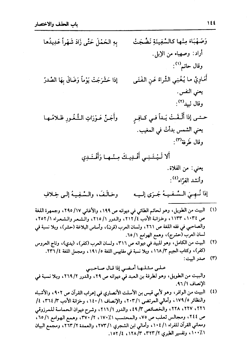 (1) البيت من الطويل، وهو لحاتم الطائي في ديوانه ص 199، والأغاني 17/ 295، وجمهرة اللغة ص 1034، 1133، وخزانة الأدب 4/ 212، والدرر 1/ 215، والشعر والشعراء 1/ 252، والصاحبي في فقه اللغة ص 261، ولسان العرب (قرن) ، وأساس البلاغة (حشر) ، وبلا نسبة في لسان العرب (حشرج) ، وهمع الهوامع 1/ 65.