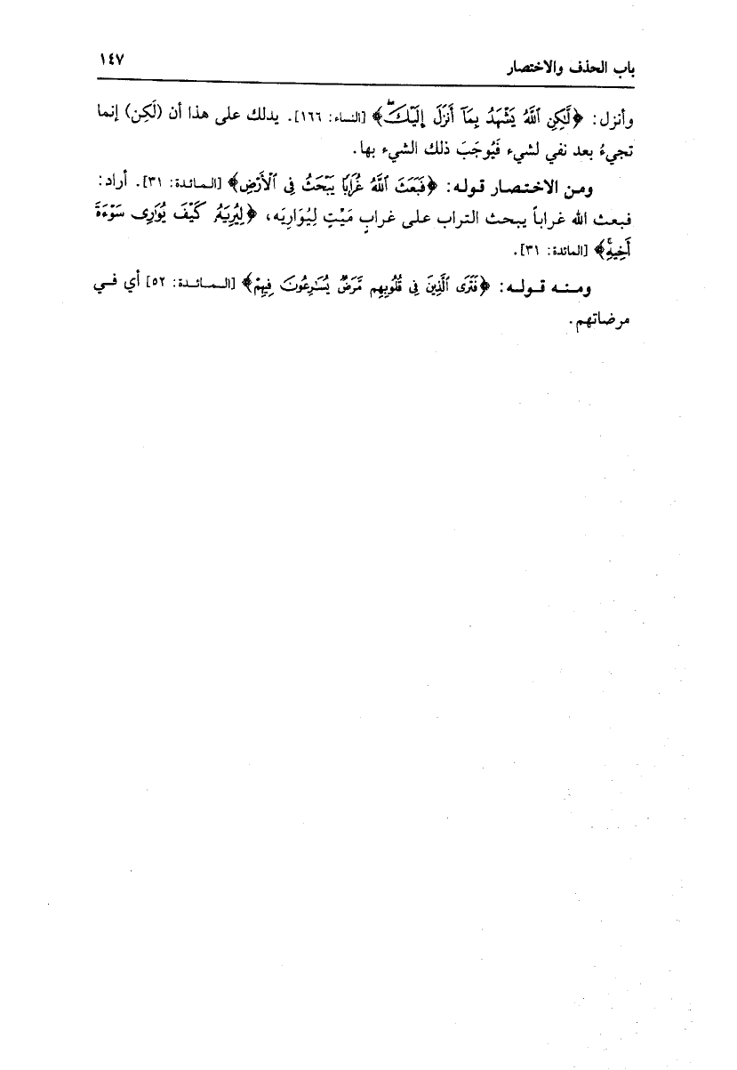 ومن الاختصار قوله: فَبَعَثَ اللَّهُ غُراباً يَبْحَثُ فِي الْأَرْضِ [المائدة: 31] . أراد: