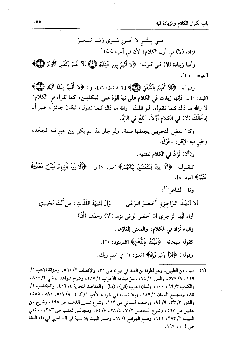 وقوله: فَلا أُقْسِمُ بِالشَّفَقِ (16) [الانشقاق: 16] . و: لا أُقْسِمُ بِهذَا الْبَلَدِ (1) [البلد: 1]-: فإنها زيدت في الكلام على نية الرّد على المكذبين، كما تقول في الكلام: