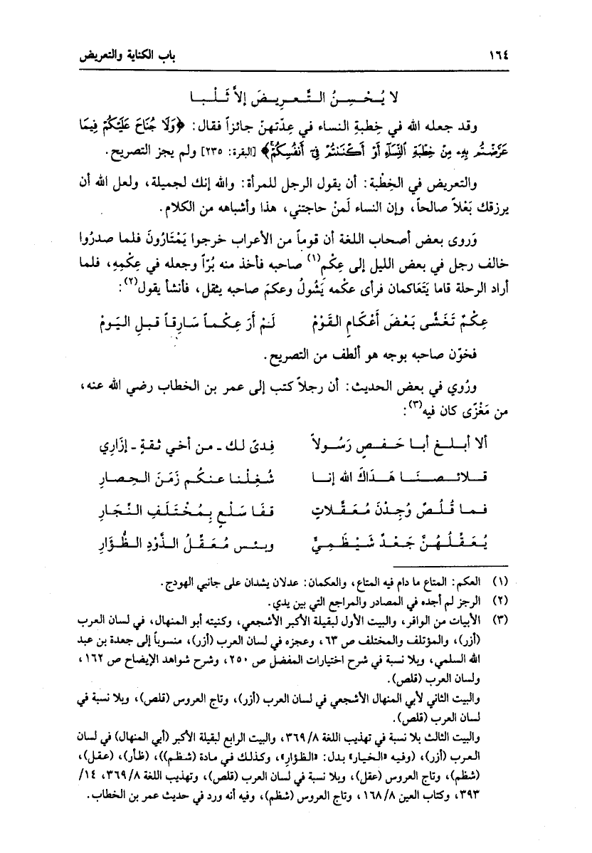 لا يحسن التّعريض إلّا ثلبا وقد جعله الله في خطبة النساء في عدّتهنّ جائزا فقال: وَلا جُناحَ عَلَيْكُمْ فِيما عَرَّضْتُمْ بِهِ مِنْ خِطْبَةِ النِّساءِ أَوْ أَكْنَنْتُمْ فِي أَنْفُسِكُمْ [البقرة: 235] ولم يجز التصريح.