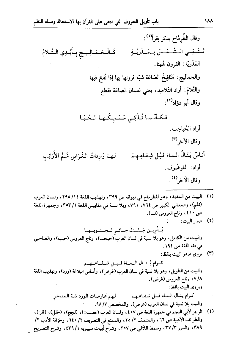 (1) البيت من المديد، وهو للطرماح في ديوانه ص 399، وتهذيب اللغة 14/ 295، ولسان العرب (تلم) ، والمعاني الكبير ص 764، 791، وبلا نسبة في مقاييس اللغة 1/ 353، وجمهرة اللغة ص 410، وتاج العروس (تلم) .