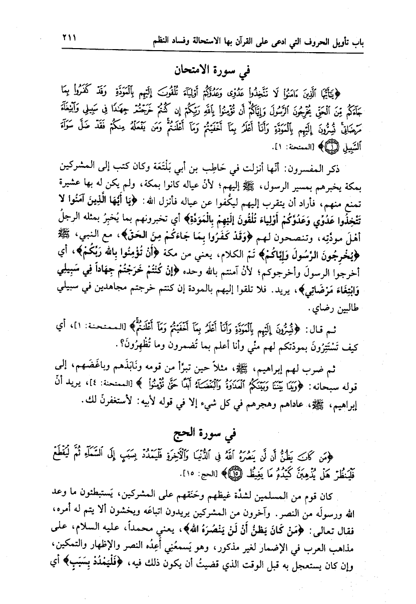 يا أَيُّهَا الَّذِينَ آمَنُوا لا تَتَّخِذُوا عَدُوِّي وَعَدُوَّكُمْ أَوْلِياءَ تُلْقُونَ إِلَيْهِمْ بِالْمَوَدَّةِ وَقَدْ كَفَرُوا بِما جاءَكُمْ مِنَ الْحَقِّ يُخْرِجُونَ الرَّسُولَ وَإِيَّاكُمْ أَنْ تُؤْمِنُوا بِاللَّهِ رَبِّكُمْ إِنْ كُنْتُمْ خَرَجْتُمْ جِهاداً فِي سَبِيلِي وَابْتِغاءَ مَرْضاتِي تُسِرُّونَ إِلَيْهِمْ بِالْمَوَدَّةِ وَأَنَا أَعْلَمُ بِما أَخْفَيْتُمْ وَما أَعْلَنْتُمْ وَمَنْ يَفْعَلْهُ مِنْكُمْ فَقَدْ ضَلَّ سَواءَ السَّبِيلِ (1) [الممتحنة: 1] .