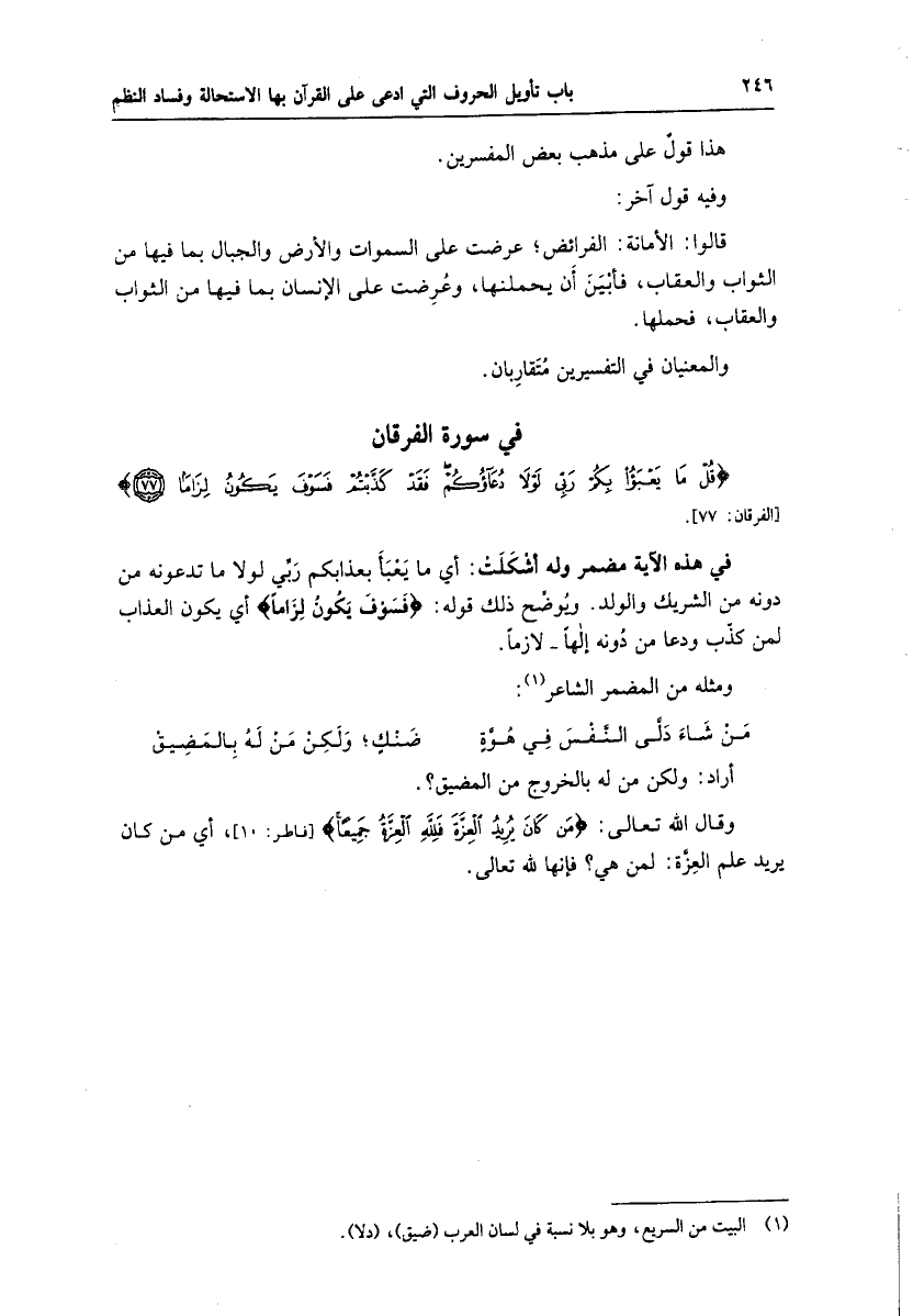 في هذه الآية مضمر وله أشكلت: أي ما يعبأ بعذابكم ربّي لولا ما تدعونه من دونه من الشريك والولد. ويوضّح ذلك قوله: فَسَوْفَ يَكُونُ لِزاماً أي يكون العذاب لمن كذّب ودعا من دونه إلها- لازما.