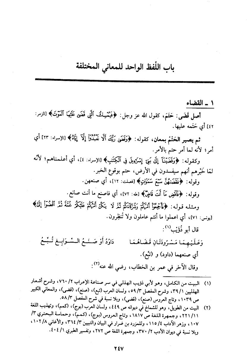 (1) البيت من الكامل، وهو لأبي ذؤيب الهذلي في سر صناعة الإعراب 2/ 760، وشرح أشعار الهذليين 1/ 39، وشرح المفصل 3/ 59، ولسان العرب (تبع) ، (صنع) ، (قضى) ، والمعاني الكبير ص 1039، وتاج العروس (صنع) ، (قضى) ، وبلا نسبة في شرح المفصل 3/ 58.