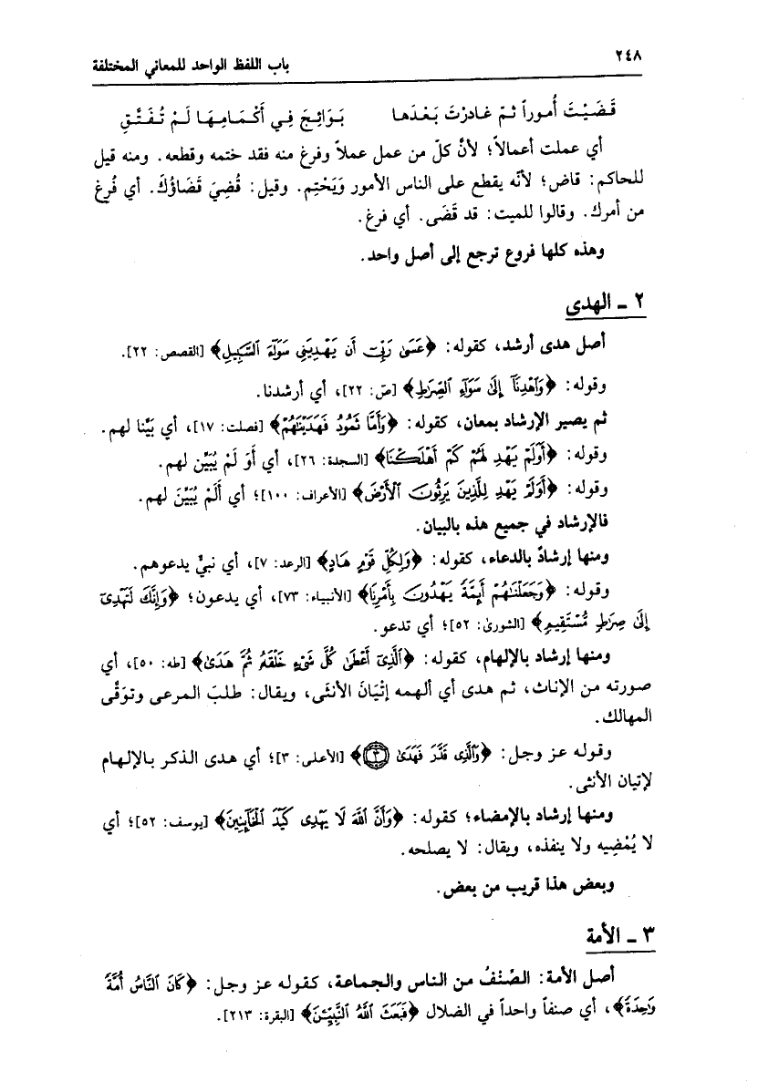 وقوله: وَجَعَلْناهُمْ أَئِمَّةً يَهْدُونَ بِأَمْرِنا [الأنبياء: 73] ، أي يدعون، وَإِنَّكَ لَتَهْدِي إِلى صِراطٍ مُسْتَقِيمٍ [الشورى: 52] ، أي تدعو.