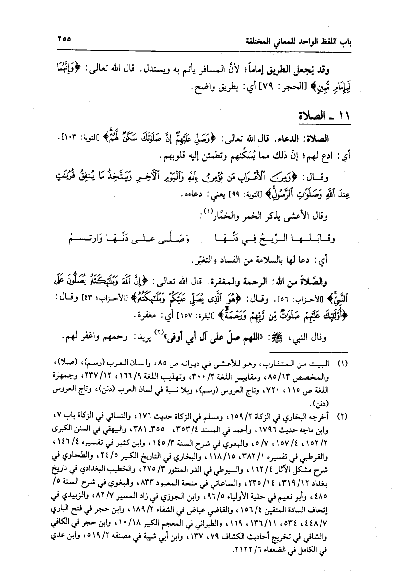 الصلاة: الدعاء. قال الله تعالى: وَصَلِّ عَلَيْهِمْ إِنَّ صَلاتَكَ سَكَنٌ لَهُمْ [التوبة: 103] .