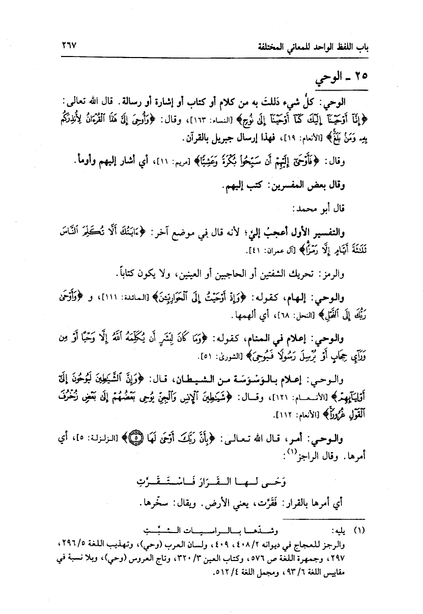 (1) يليه: وشدّها بالراسيات الثبّت والرجز للعجاج في ديوانه 2/ 408، 409، ولسان العرب (وحي) ، وتهذيب اللغة 5/ 296، 297، وجمهرة اللغة ص 576، وكتاب العين 3/ 320، وتاج العروس (وحي) ، وبلا نسبة في مقاييس اللغة 6/ 93، ومجمل اللغة 4/ 512.