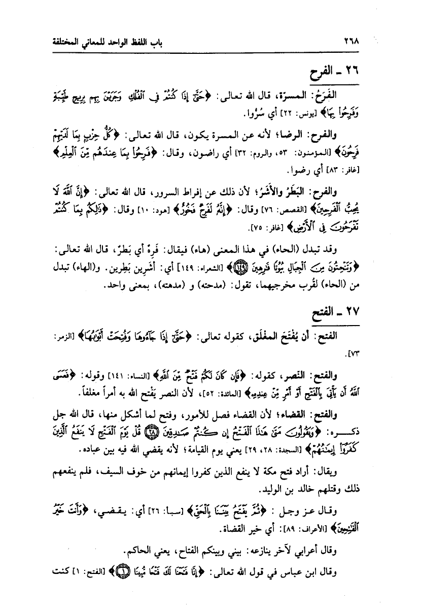 والفرح: البطر والأشر، لأن ذلك عن إفراط السرور، قال الله تعالى: إِنَّ اللَّهَ لا يُحِبُّ الْفَرِحِينَ [القصص: 76] وقال: إِنَّهُ لَفَرِحٌ فَخُورٌ [هود: 10] وقال: ذلِكُمْ بِما كُنْتُمْ تَفْرَحُونَ فِي الْأَرْضِ [غافر: 75] .