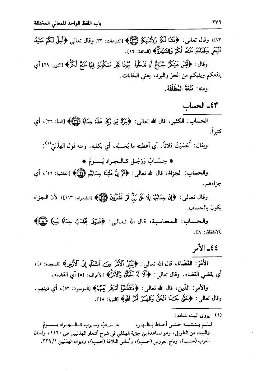 والبيت من الطويل، وهو لساعدة بن جؤية الهذلي في شرح أشعار الهذليين ص 1160، ولسان العرب (حسب) ، وتاج العروس (حسب) ، وأساس البلاغة (حسب) ، وديوان الهذليين 1/ 229.