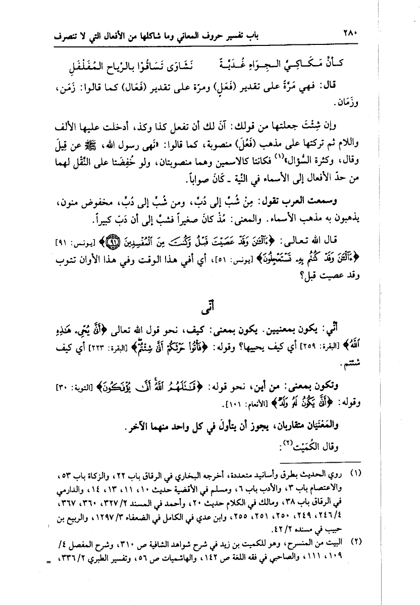 (2) البيت من المنسرح، وهو للكميت بن زيد في شرح شواهد الشافية ص 310، وشرح المفصل 4/ 109، 111، والصاحبي في فقه اللغة ص 142، والهاشميات ص 56، وتفسير الطبري 2/ 336،