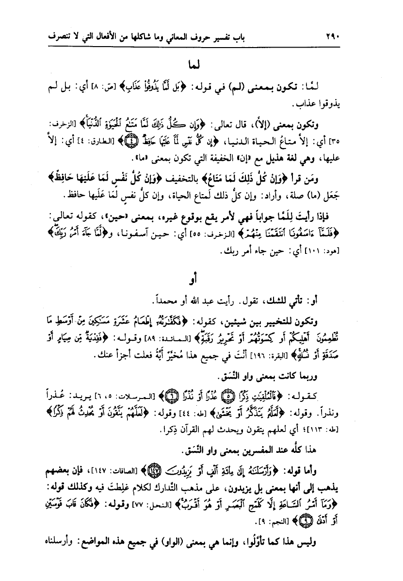 لمّا: تكون بمعنى (لم) في قوله: بَلْ لَمَّا يَذُوقُوا عَذابِ [ص: 8] أي: بل لم يذوقوا عذاب.