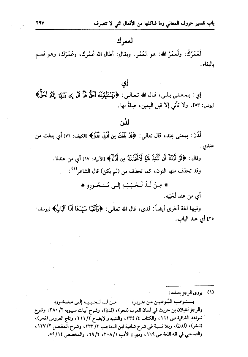 لدن: بمعنى عند، قال تعالى: قَدْ بَلَغْتَ مِنْ لَدُنِّي عُذْراً [الكهف: 76] أي بلغت من عندي.