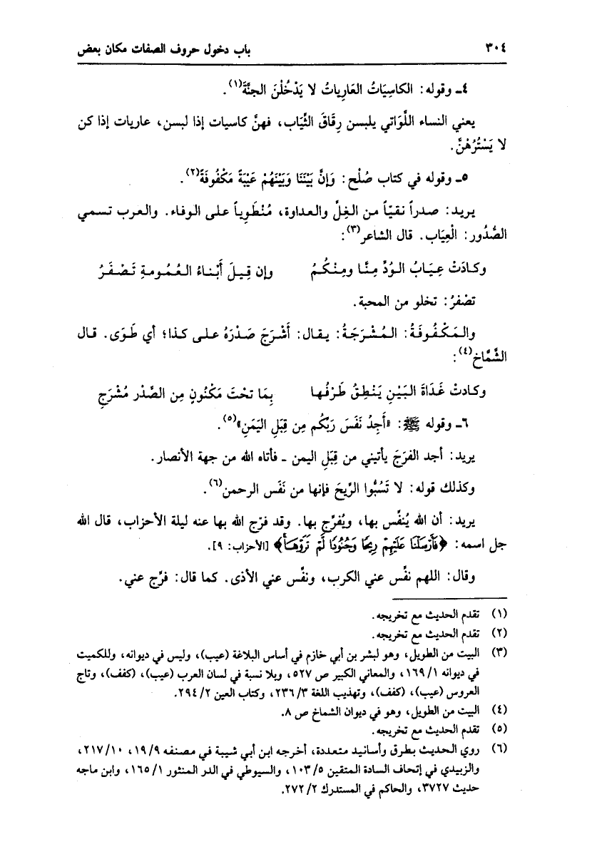(6) روي الحديث بطرق وأسانيد متعددة، أخرجه ابن أبي شيبة في مصنفه 9/ 19، 10/ 217، والزبيدي في إتحاف السادة المتقين 5/ 103، والسيوطي في الدر المنثور 1/ 165، وابن ماجه حديث 3727، والحاكم في المستدرك 2/ 272.