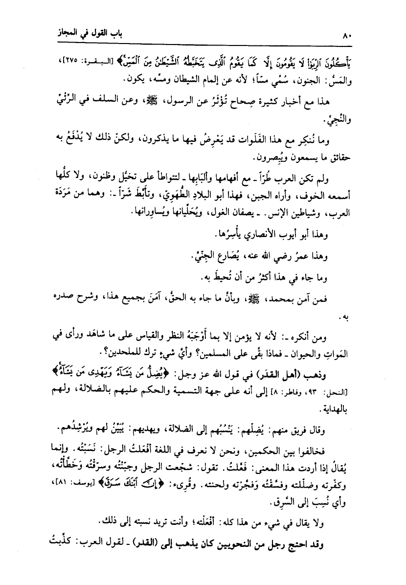 ومن أنكره-: لأنه لا يؤمن إلّا بما أوجبه النظر والقياس على ما شاهد ورأى في الموات والحيوان- فماذا بقي على المسلمين؟ وأيّ شيء ترك للملحدين؟.