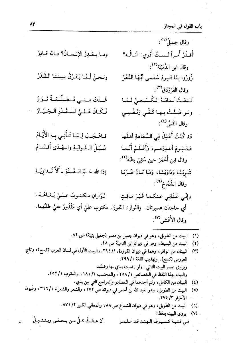 (1) البيت من الطويل، وهو في ديوان جميل بن معمر (جميل بثينة) ص 82.