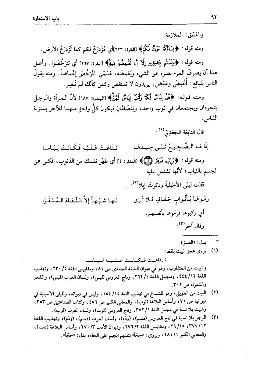 (2) البيت من الطويل، وهو للشماخ في تهذيب اللغة 15/ 154، وليس في ديوانه، ولليلى الأخيلية في ديوانها ص 70، وأساس البلاغة (ثوب) ، والمعاني الكبير ص 486، وكتاب الصناعتين ص 353، والبيت بلا نسبة في مجمل اللغة 1/ 372، وتاج العروس (ثوب) ، ولسان العرب (ثوب) .