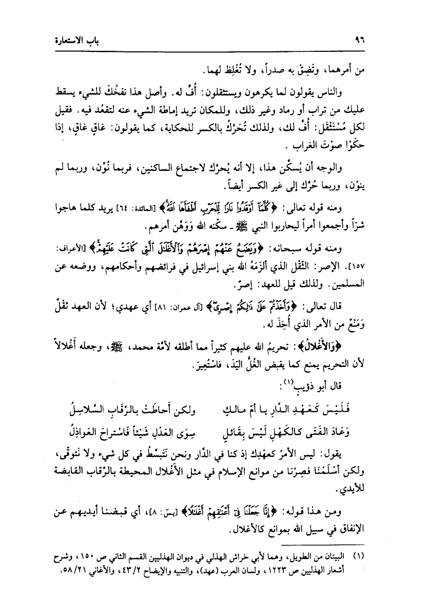 ومنه قوله سبحانه: وَيَضَعُ عَنْهُمْ إِصْرَهُمْ وَالْأَغْلالَ الَّتِي كانَتْ عَلَيْهِمْ [الأعراف: