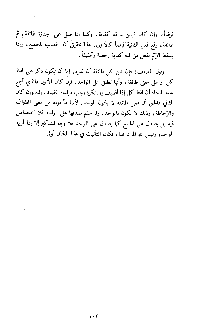 وقول المصنف: فإن ظن كل طائفة أن غيره إما أن يكون ذكر على لفظ كل أو على معنى طائفة وأنها تطلق على الواحد فإن كان الأول فالذي أجمع عليه النحاة أن لفظ كل إذا أضيف إلى نكرة وجب مراعاة المضاف إليه وإن كان الثاني فالحق أن معنى طائفة لا يكون للواحد لأنها مأخوذة من معنى الطواف والإحاطة وذلك لا يكون بالواحد ولو سلم صدقها على الواحد فلا اختصاص فيه بل يصدق على الجمع كما يصدق على الواحد فلا وجه للتذكير إلا إذا أريد الواحد وليس هو المراد هنا فكان التأنيث في هذا المكان أولى.