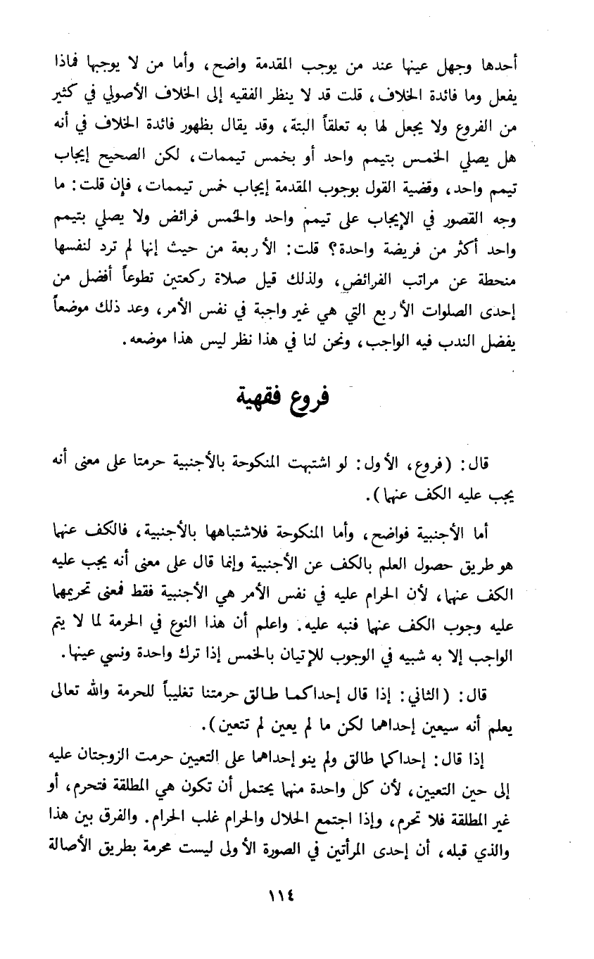 أحدها وجهل عينها عند من يوجب المقدمة واضح وأما من لا يوجبها فماذا يفعل وما فائدة الخلاف قلت قد لا ينظر الفقيه إلى الخلاف الأصولي في كثير من الفروع ولا يجعل لها به تعلقا البتة وقد يقال بظهور فائدة الخلاف في أنه هل يصلي الخمس بتيمم واحد أو بخمس تيممات لكن الصحيح إيجاب تيمم واحد وقضية القول بوجوب المقدمة إيجاب خمس تيممات فإن قلت ما وجه القصور في الإيجاب على تيمم واحد والخمس فرائض ولا يصلي بتيمم واحد أكثر من فريضة واحدة قلت الأربعة من حيث إنها لم ترد لنفسها منحطة عن مراتب الفرائض ولذلك قيل صلاة ركعتين تطوعا أفضل من إحدى الصلوات الأربع التي هي غير واجبة في نفس الأمر وعد ذلك موضعا يفضل الندب فيه الواجب ونحن لنا في هذا نظر ليس هذا موضعه.