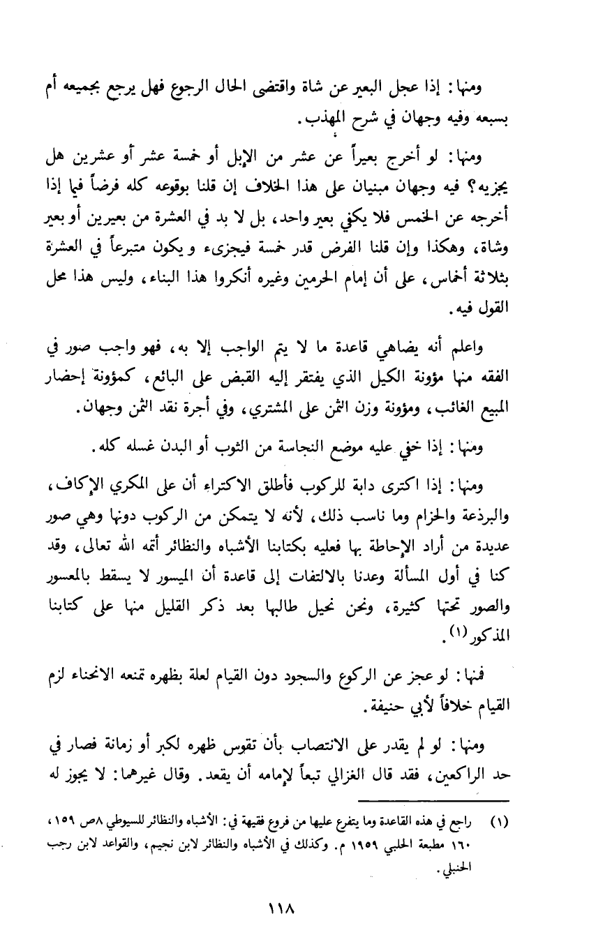 1 راجع في هذه القاعدة وما يتفرع عليها من فروع فقيهة في: الأشباه والنظائر للسيوطي 8 ص159، 160 مطبعة الحلبي 1959م. وكذلك في الأشباه والنظائر لابن نجيم. والقواعد لابن رجب الحنبلي.