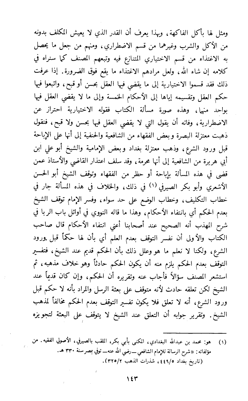 1 هو محمد بن عبد الله البغدادي المكنى بأبي بكر الملقب بالصيرفي الأصولي الفقيه من مؤلفاته شرح الرسالة للإمام الشافعي – رضي الله عنه – توفي بمصر سنة 330 هـ.