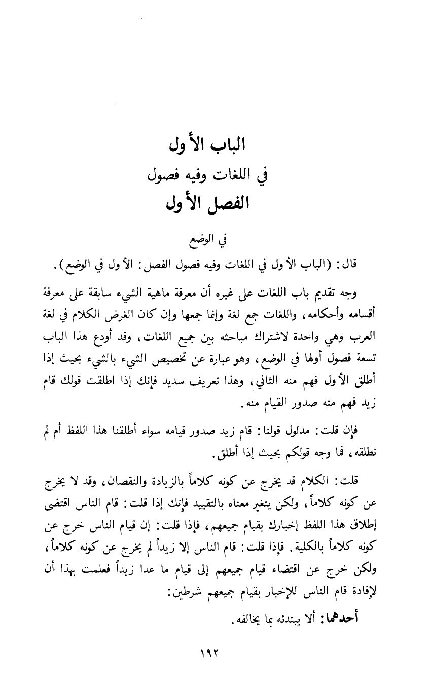 قال الباب الأول في اللغات وفيه فصول الفصل الأول في الوضع.