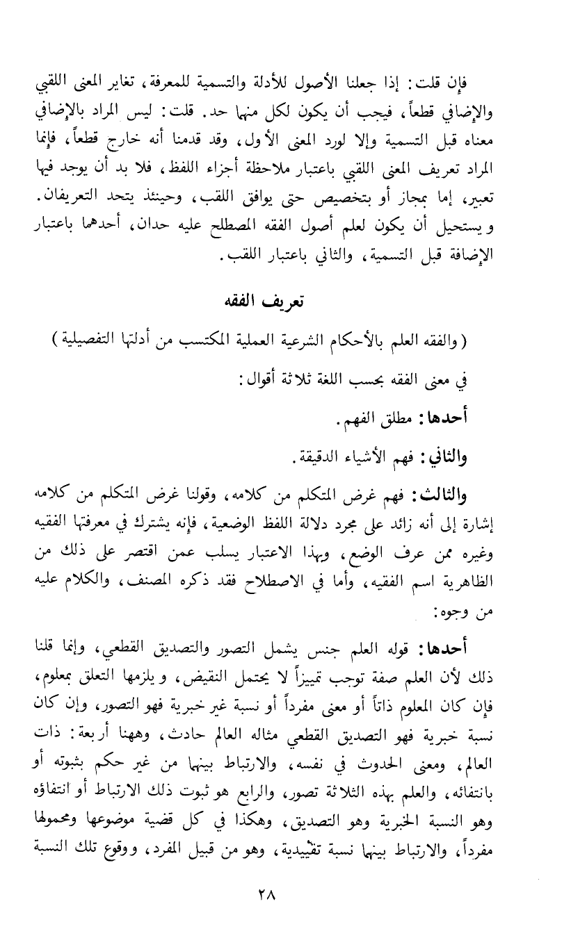 "والفقه العلم بالأحكام الشرعية العملية المكتسب من أدلتها التفصيلية".