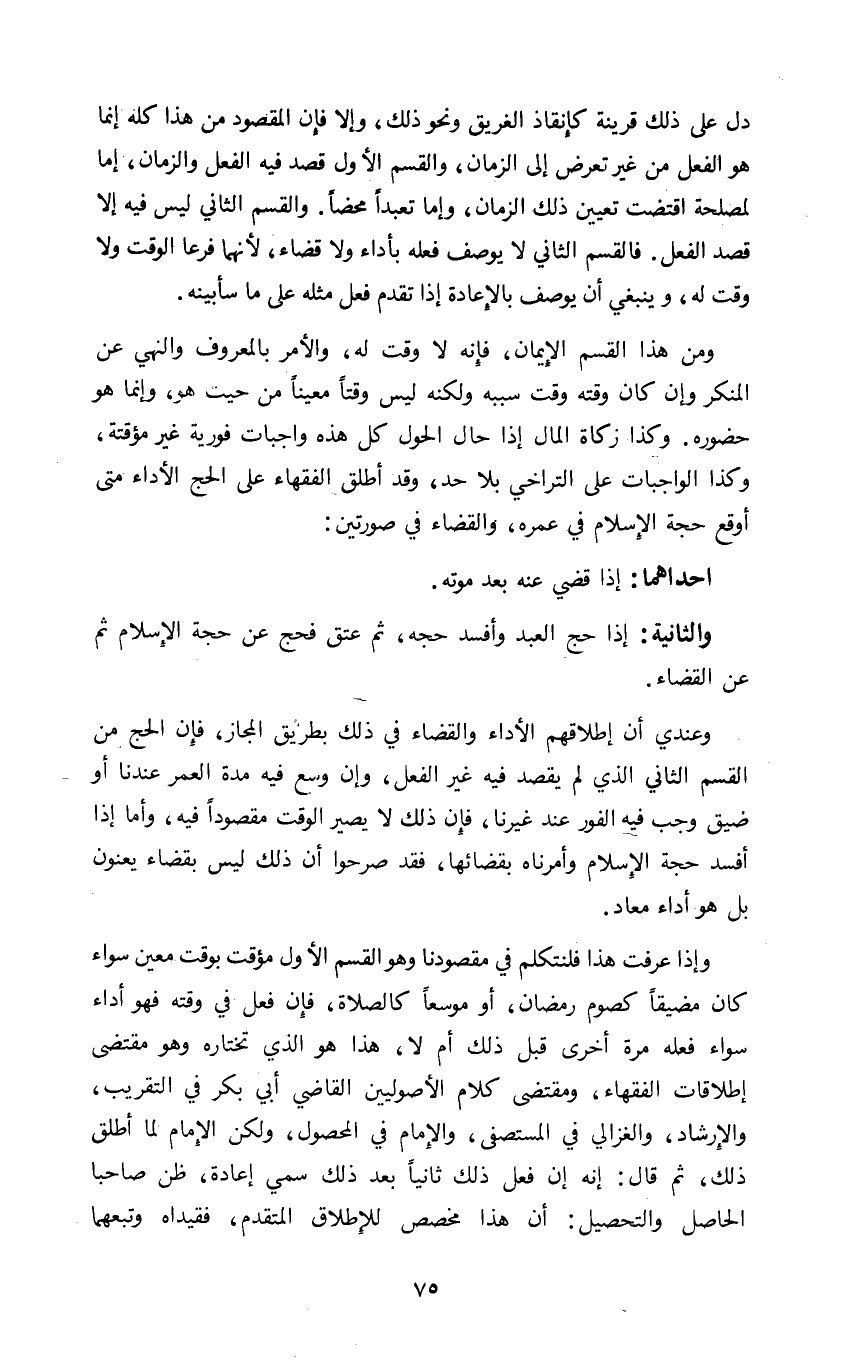 وإذا عرفت هذا فلنتكلم في مقصودنا وهو القسم الأول مؤقت بوقت معين سواء كان مضيقا كصوم رمضان أو موسعا كالصلاة فإن فعل في وقته فهو أداء سواء فعله مرة أخرى قبل ذلك أم لا هذا هو الذي تختاره وهو مقتضى إطلاقات الفقهاء ومقتضى كلام الأصوليين القاضي أبي بكر في التقريب والإرشاد والغزالي في المستصفى والإمام في المحصول ولكن الإمام لما أطلق ذلك ثم قال إنه إن فعل ذلك ثانيا بعد ذلك سمي إعادة ظن صاحبا الحاصل والتحصيل أن هذا مخصص للإطلاق المتقدم فقيداه وتبعهما