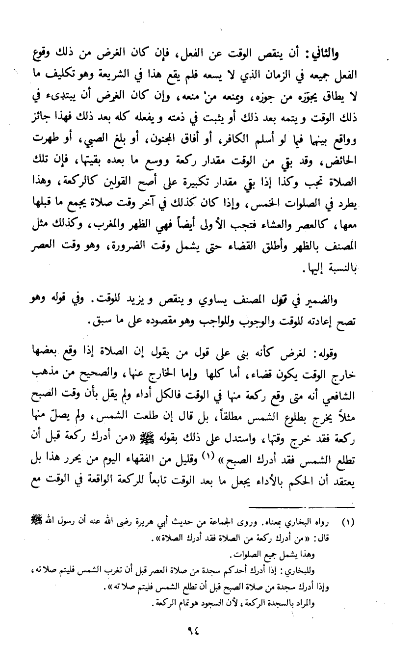 وقوله: لغرض كأنه بنى على قول من يقول إن الصلاة إذا وقع بعضها خارج الوقت يكون قضاء أما كلها وإما الخارج عنها والصحيح من مذهب الشافعي أنه متى وقع ركعة منها في الوقت فالكل أداء ولم يقل بأن وقت الصبح مثلا يخرج بطلوع الشمس مطلقا بل قال إن طلعت الشمس ولم يصل منها ركعة فقد خرج وقتها واستدل على ذلك بقوله صلى الله عليه وسلم: "من أدرك ركعة قبل أن تطلع الشمس فقد أدرك الصبح" 1 وقليل من الفقهاء اليوم من يحرر هذا بل يعتقد أن الحكم بالأداء يجعل ما بعد الوقت تابعا للركعة الواقعة في الوقت مع
