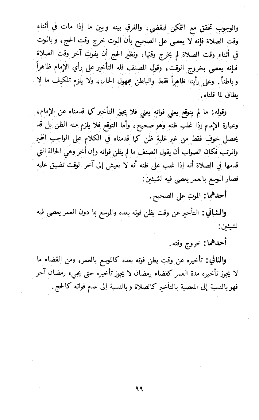 والثاني: التأخير عن وقت يظن فوته بعده والموسع بما دون العمر يعصى فيه لشيئين: